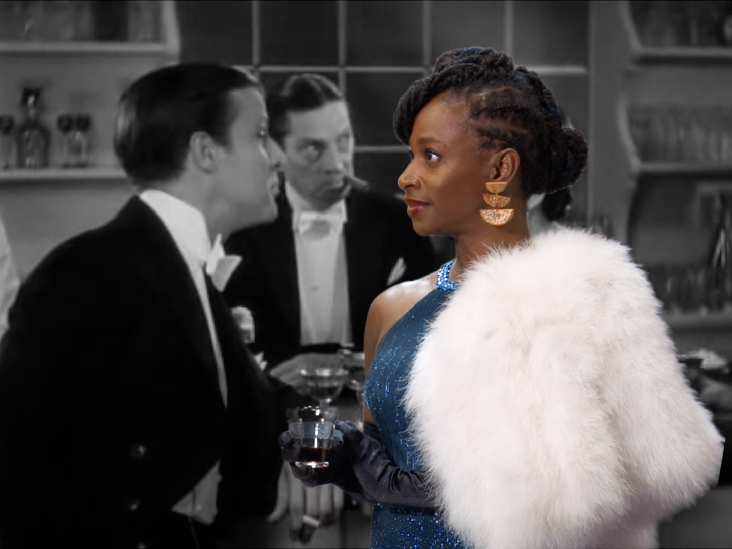 Scenes from Hollywood feature Imitation of life (1934) is crashed by an elegant woman of color.